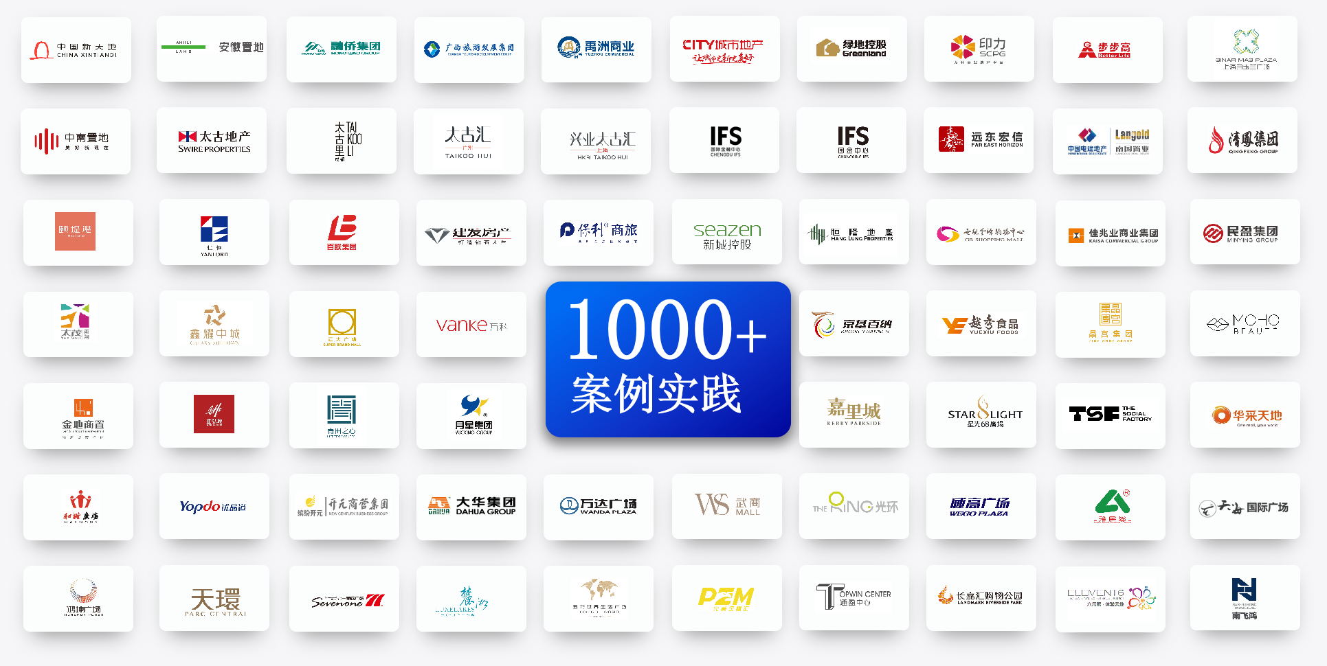近30年來,團(tuán)隊服務(wù)行業(yè)客戶已突破1000家,在商業(yè)地產(chǎn)行業(yè)Top50企業(yè)中,海鼎科技客戶覆蓋率達(dá)60%,包括:恒隆地產(chǎn)、太古地產(chǎn)、九龍倉集團(tuán)、印力集團(tuán)等知名企業(yè),擁有前沿、可靠的商業(yè)地產(chǎn)數(shù)字化建設(shè)經(jīng)驗。